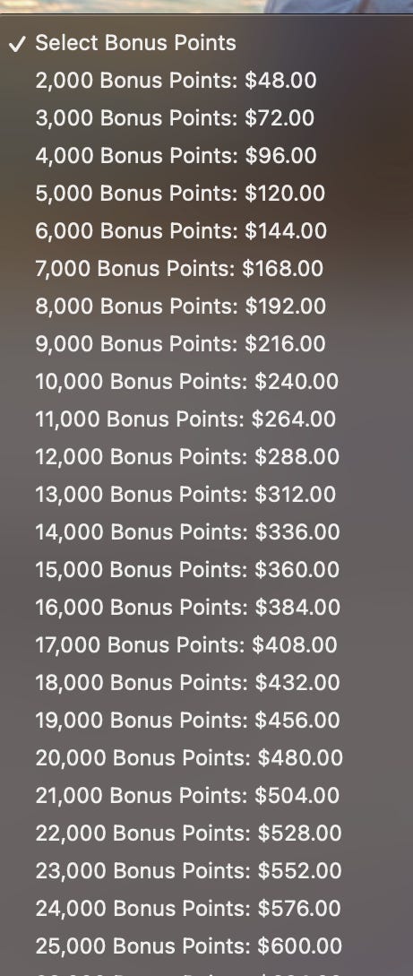 You can go on Hyatt’s website right now and buy 5,000 points for $120. Almost 50% off.